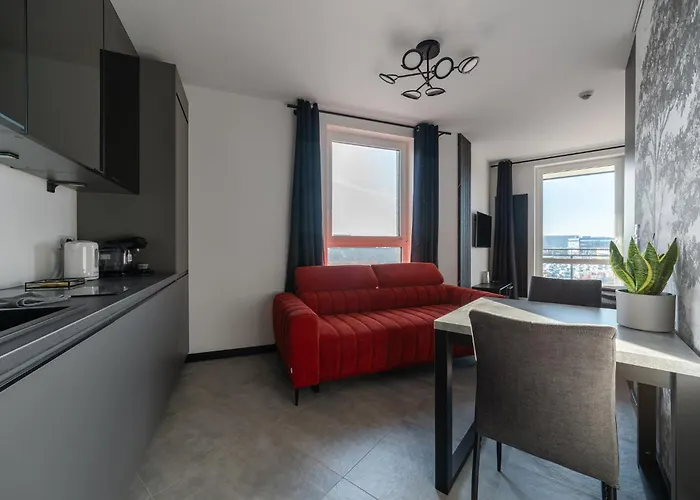 Nowe Apartamenty Warszawa Wiktoryn Tv Smart Wi-Fi lägenhet ligger 10 minuters bilresa från Warsawa, upprorsmuseet och erbjuder boende med WiFi i hela boendet. Vattenkokare, kylskåp och ugn finns i ett komplett kök.